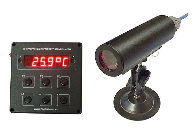 ИК-пирометр Кельвин-АРТО - это стационарный измеритель температуры для промышленного применения в прочном металлическом корпусе. Имеет двухблочное исполнение: пульт управления, ИК-датчик, соединительный кабель 3 м, выход RS 232, токовый выход, установка коэффициента излучения, установка порога, контакты реле для управления исполнительными устройствами.